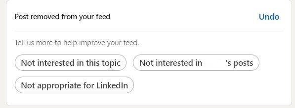 PS.: Don’t tell me I did not try to get LinkedIn to work properly for me. But as it is the case with everything “Microsoft” touches, the learning algorithm for LinkedIn, especially after the Microsoft take-over, is dismal is not stupid at best. I have tried to help (By selecting the below options shown below thousands of times…) it’s algorithm work for my needs thousands if not more times, but in vain.
